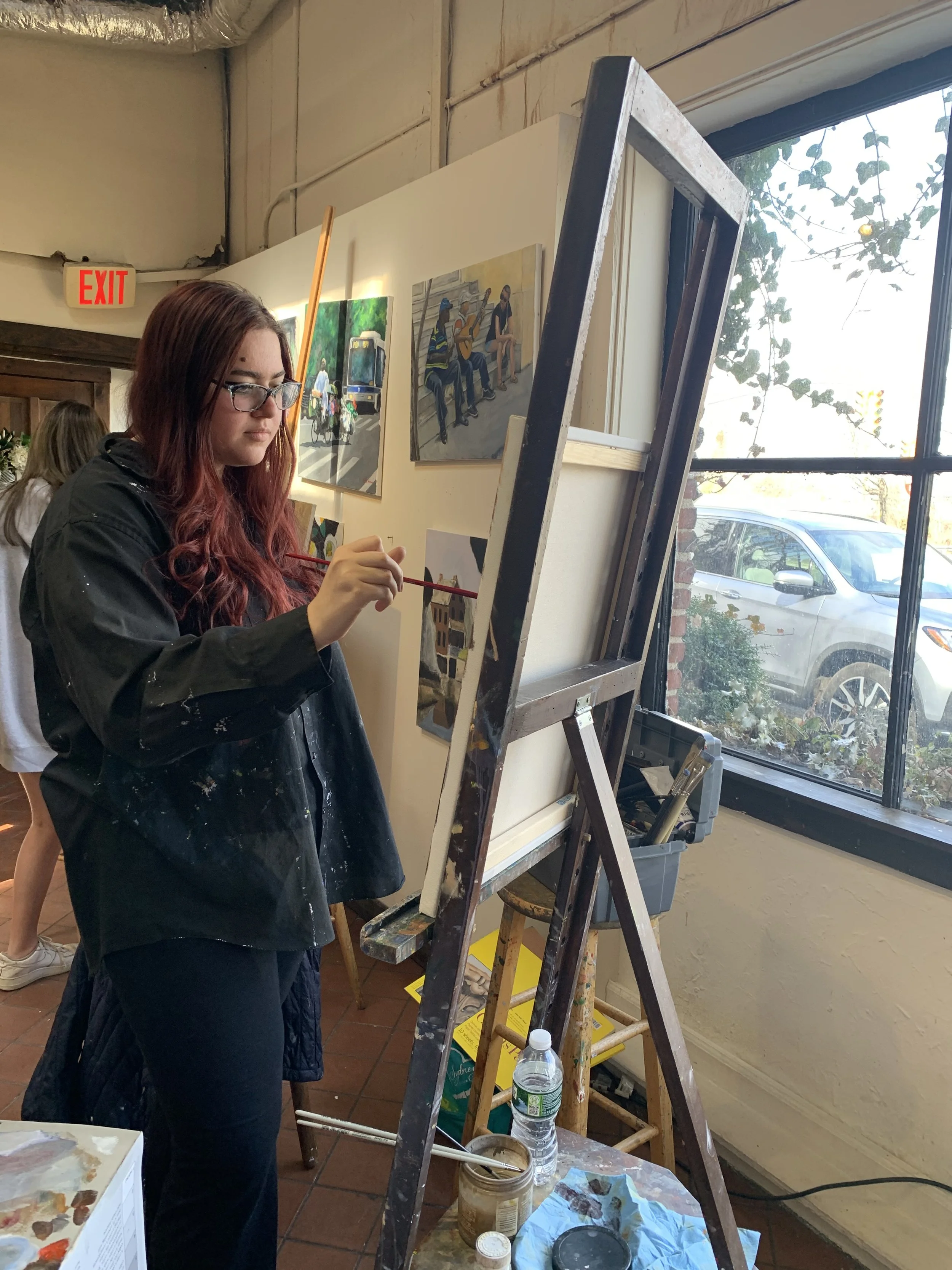 Sydney Weisman is an artist from Roslyn, New York who is pursuing a BFA in Art and Design Education at Adelphi University. She has produced a wide variety of work, experimenting stylistically as she continues to develop her craft. While engaging in the making of art on a daily basis through drawing, printmaking and painting, she has created a large body of diverse work, rendered in both realistic and abstract styles. She strives to express the nuances of human emotion through portraiture and by capturing moments in time through cityscapes, landscapes and through people watching. By exploring color, as well as the use of lines and brushwork, she creates pieces that emote strong feelings that tell the story of my subjects in candid snapshots. Visitors to her previous solo exhibits have shared experiencing a strong connection to many of the subjects and places captured in her artwork. Her true passion is that of painting. Her current study explores pathways and connections, with a dual lens, one newly focused on nature and the other continuing to capture moments of time in cityscapes. She has had two comprehensive one woman shows at the Manhasset Library in New York and will have a third upcoming solo exhibit this spring, on display at the Manhasset Library from mid May through October of 2024.